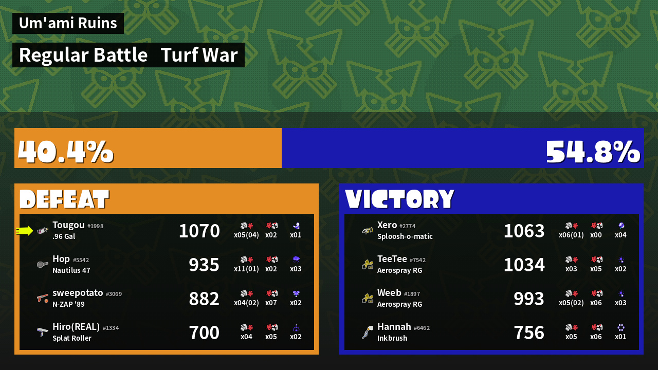 | Medals | #1 Turf Inker #1 Splat Assister #1 Ground Traveler | ||