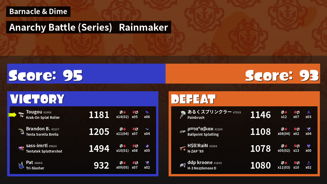| Mode | Rainmaker - Anarchy Battle (Series) |