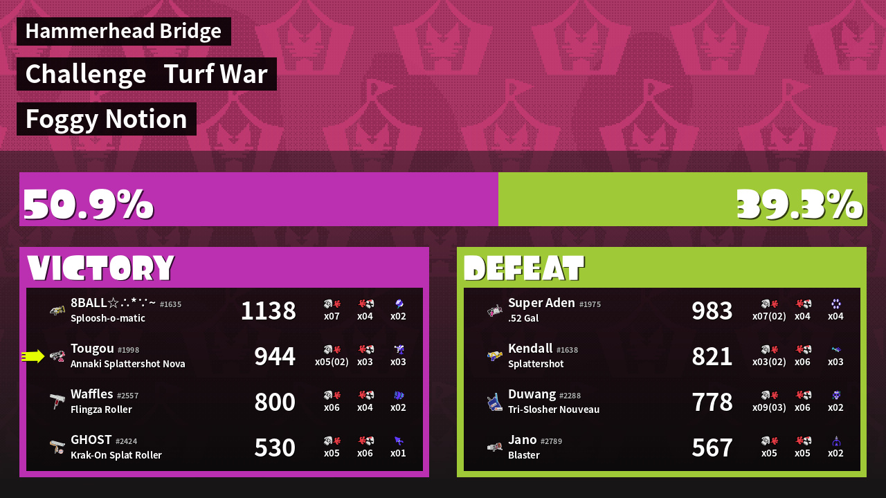 | Mode | Turf War - Challenge | ||