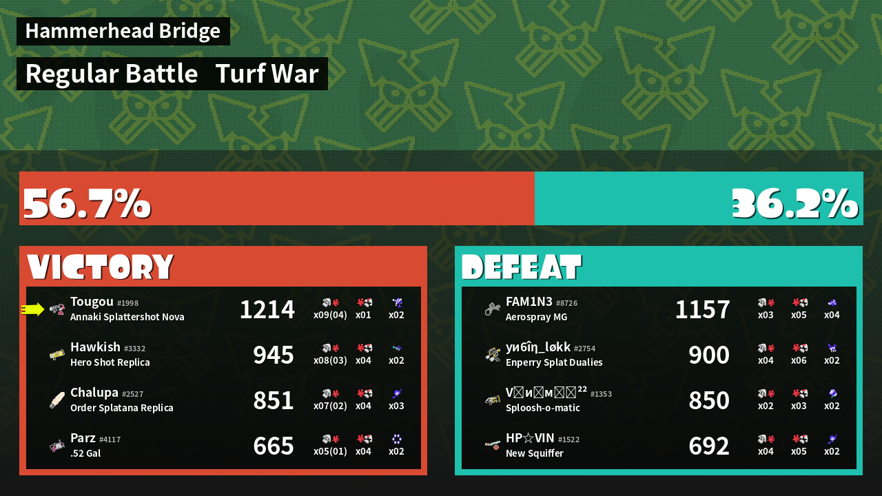 | Mode | Turf War - Regular Battle | ||