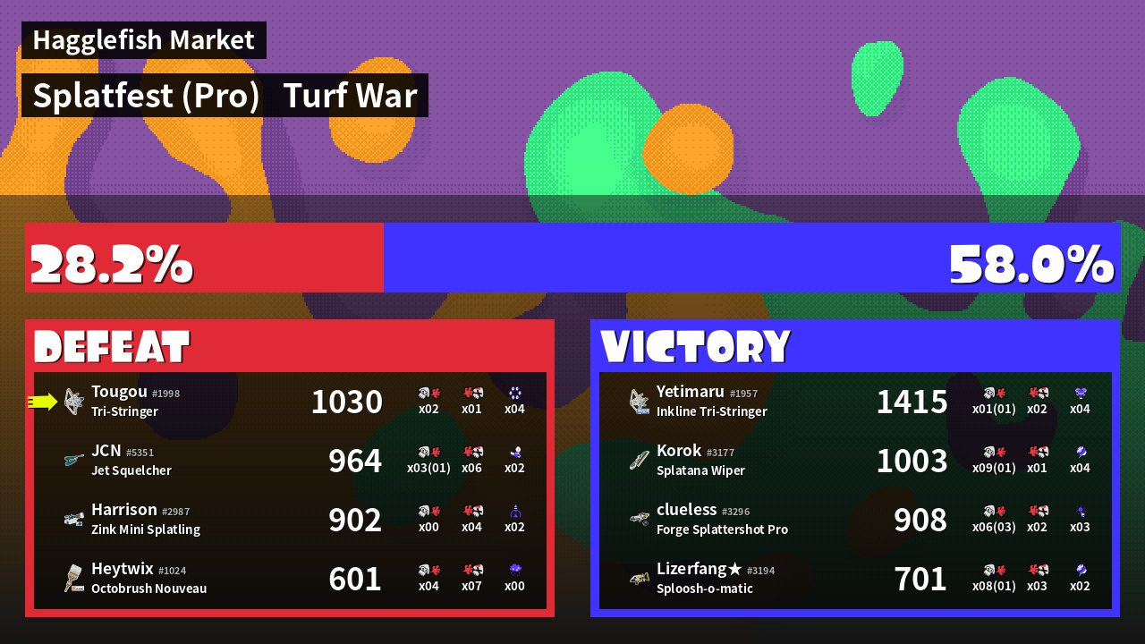 | Mode | Turf War - Splatfest (Pro) | ||