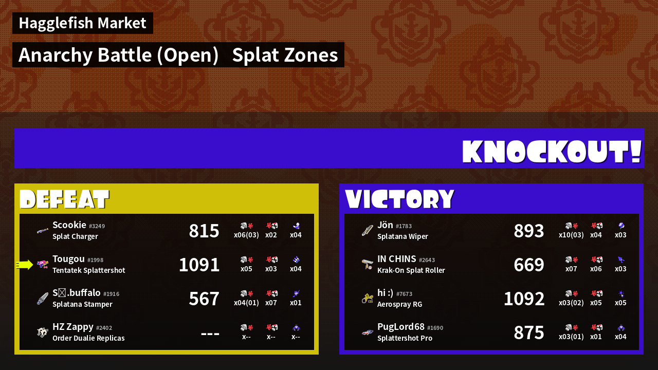 | Mode | Splat Zones - Anarchy Battle (Open) | ||