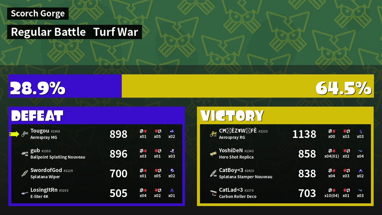 | Mode | Turf War - Regular Battle | ||