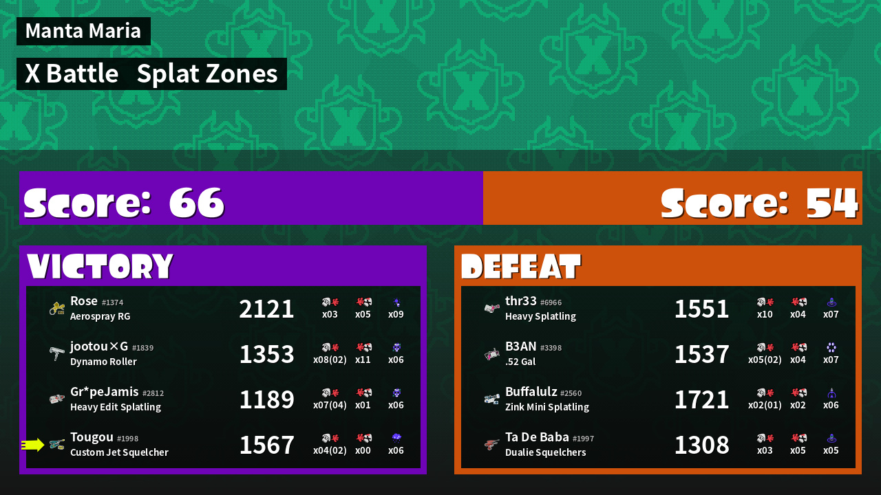 | Mode | Splat Zones - X Battle | ||