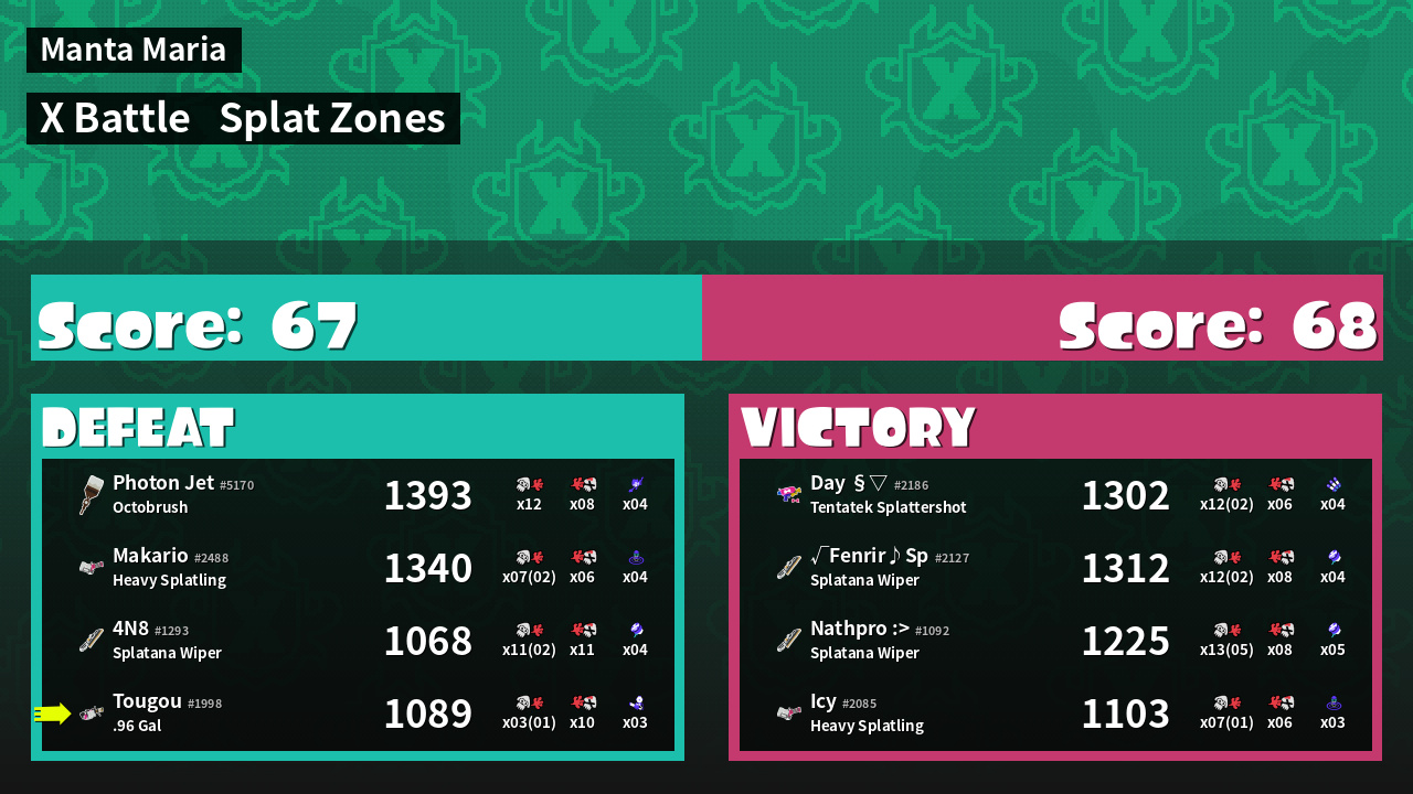 | Mode | Splat Zones - X Battle | ||