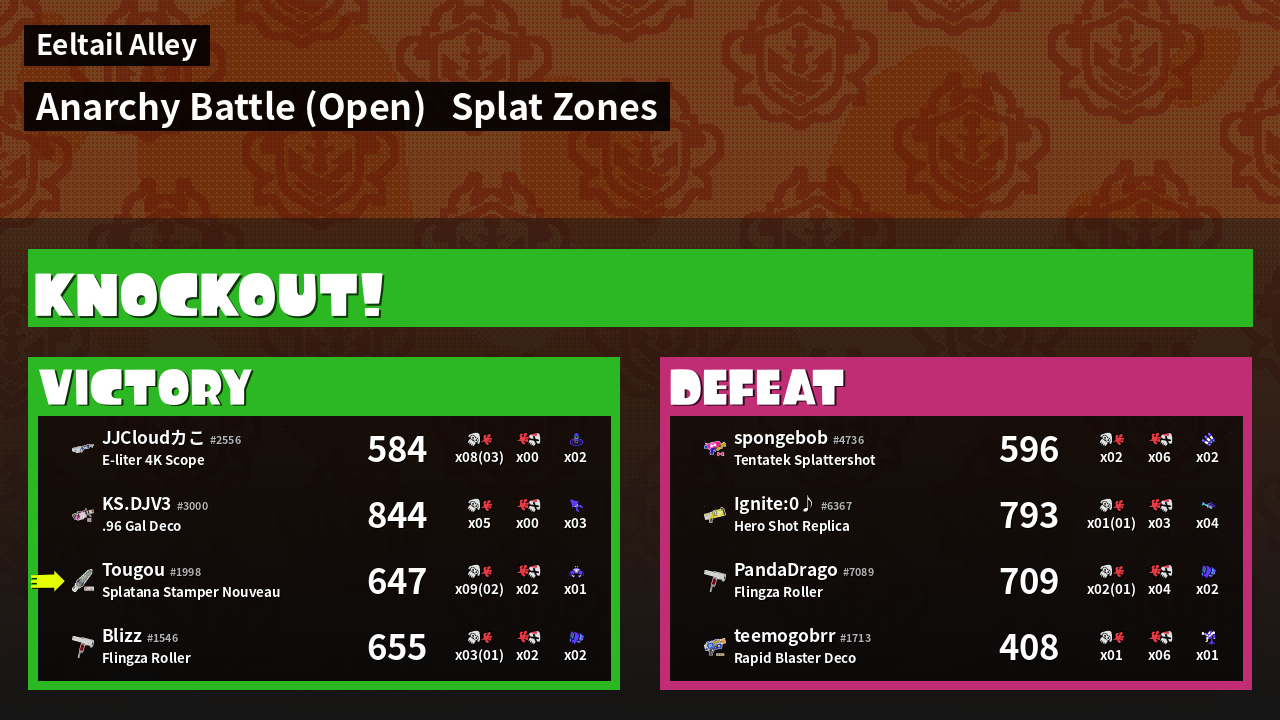 | Mode | Splat Zones - Anarchy Battle (Open) | ||