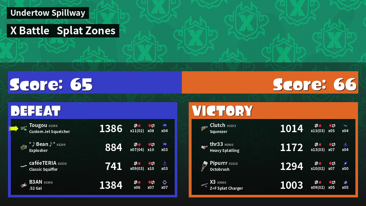 | Mode | Splat Zones - X Battle | ||