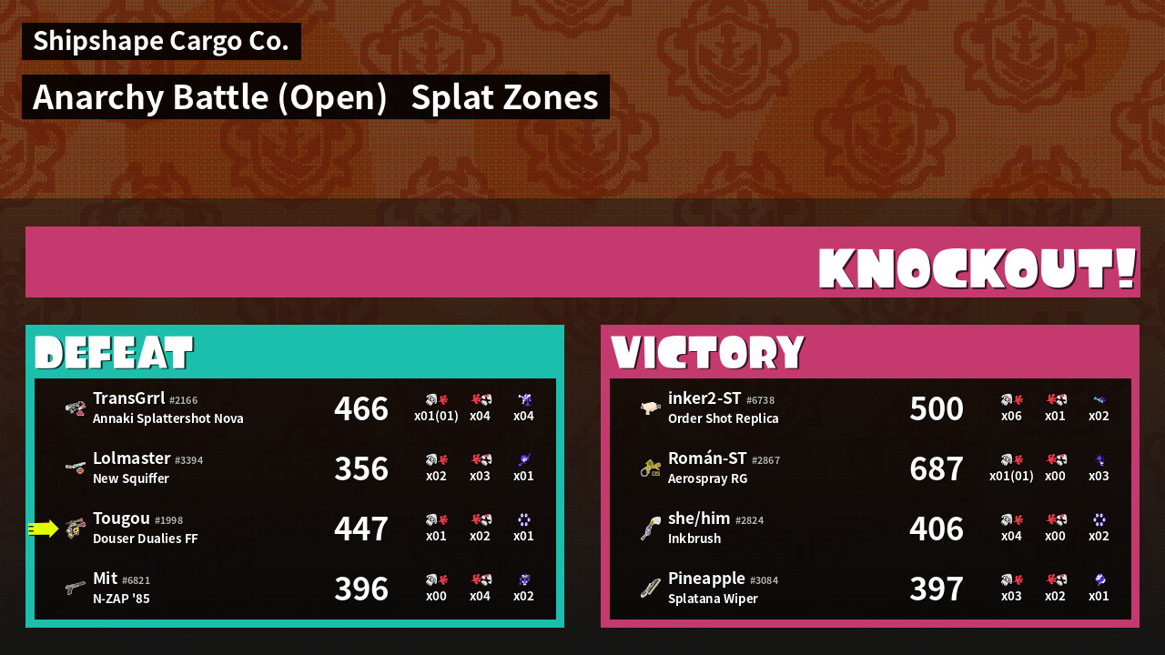 | Mode | Splat Zones - Anarchy Battle (Open) | ||