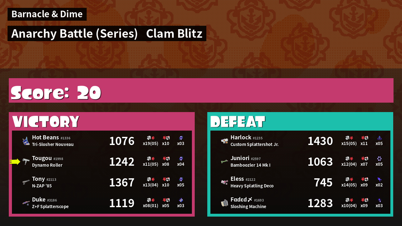 | Mode | Clam Blitz - Anarchy Battle (Series) | ||