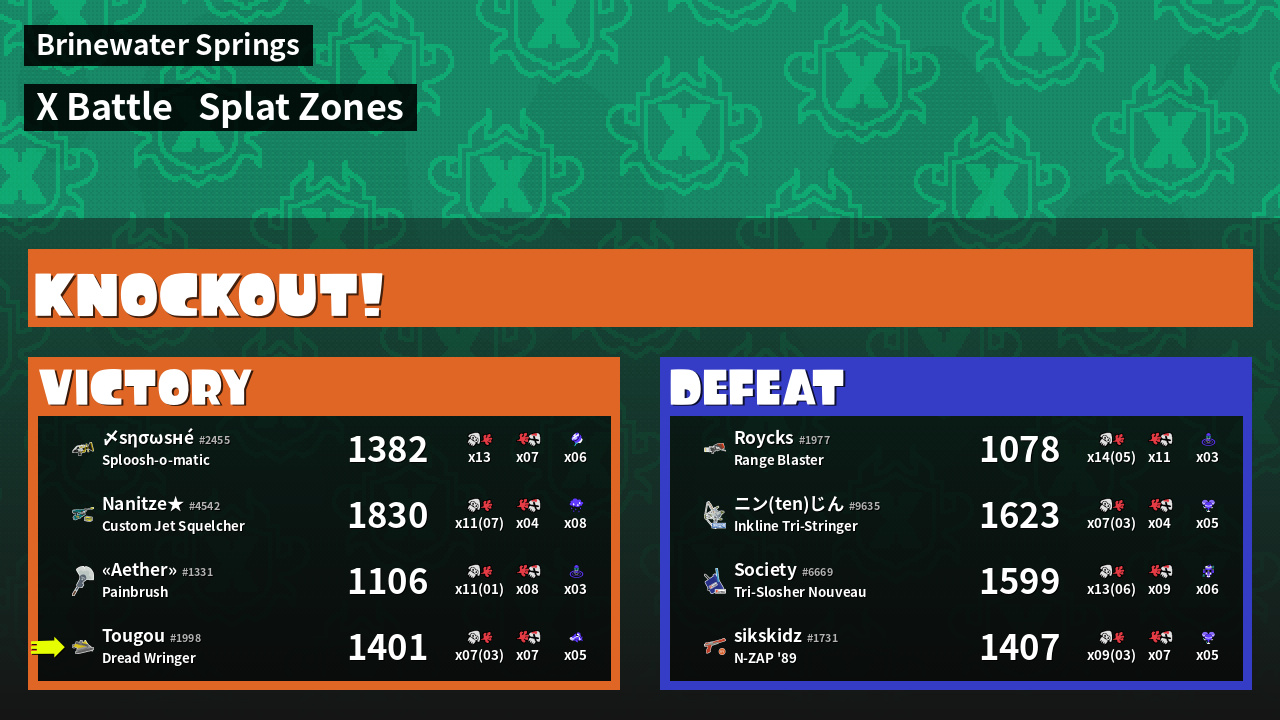 | Mode | Splat Zones - X Battle | ||