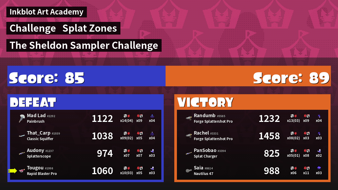 | Challenge | The Sheldon Sampler Challenge Make the most of random weapons! | ||