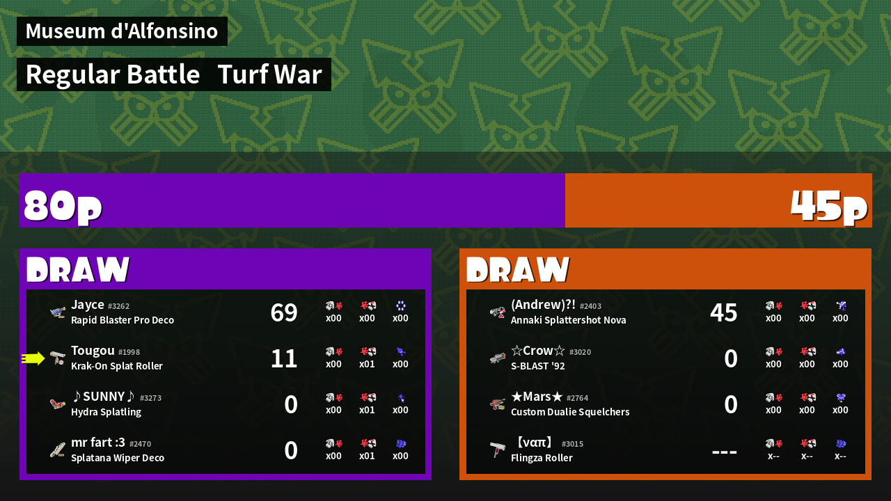 | Mode | Turf War - Regular Battle |