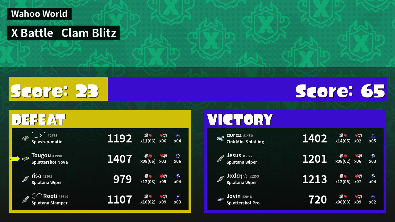 | Mode | Clam Blitz - X Battle |