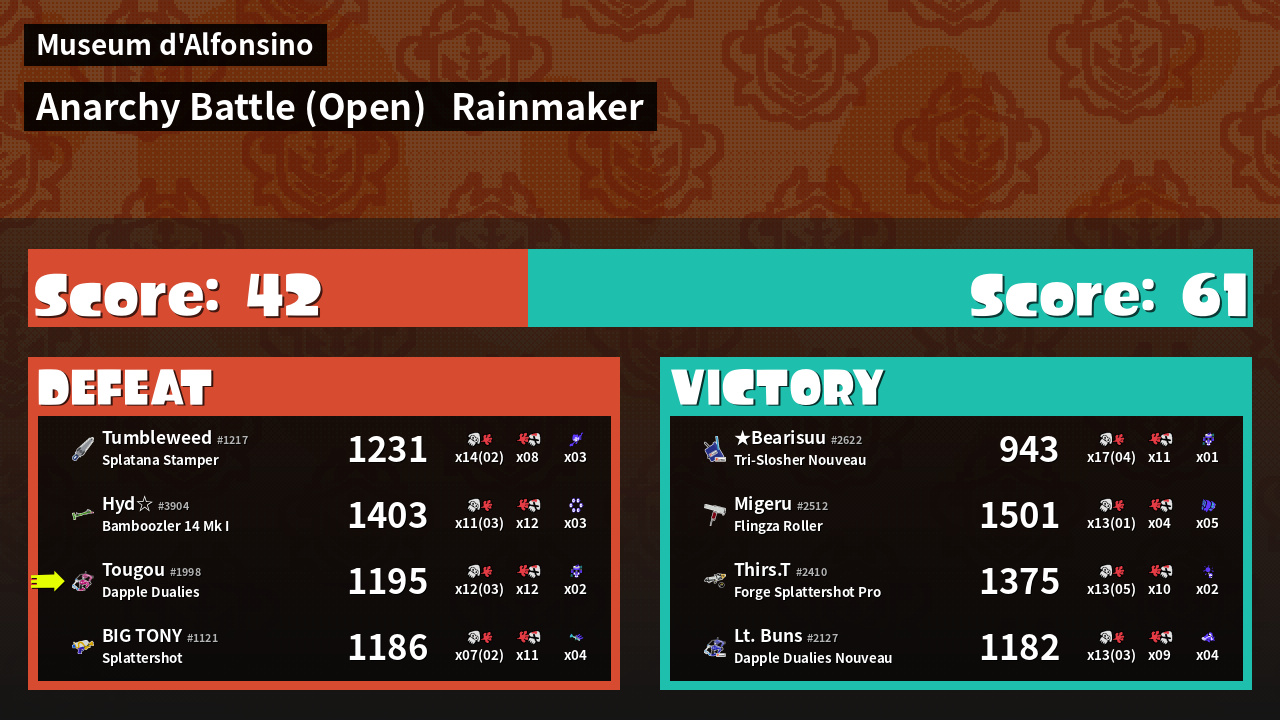 | Mode | Rainmaker - Anarchy Battle (Open) | ||