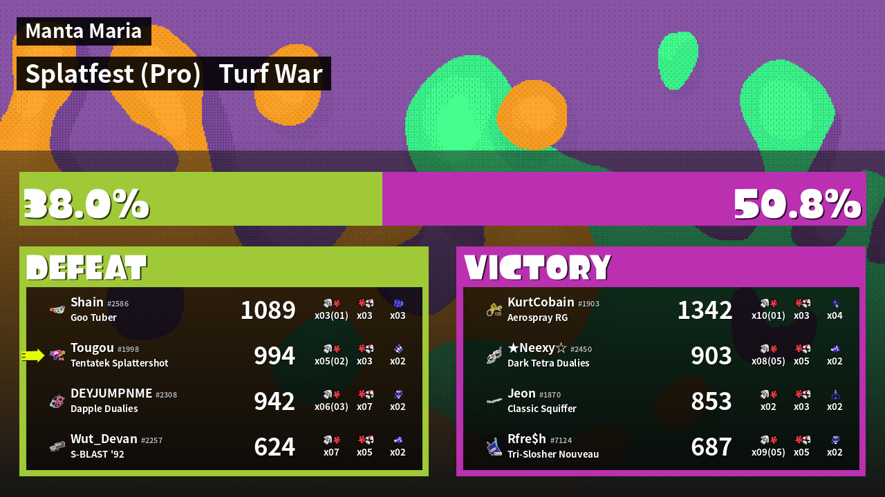 | Mode | Turf War - Splatfest (Pro) | ||
