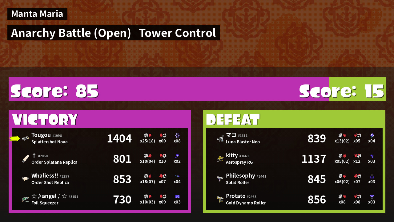 | Mode | Tower Control - Anarchy Battle (Open) | ||