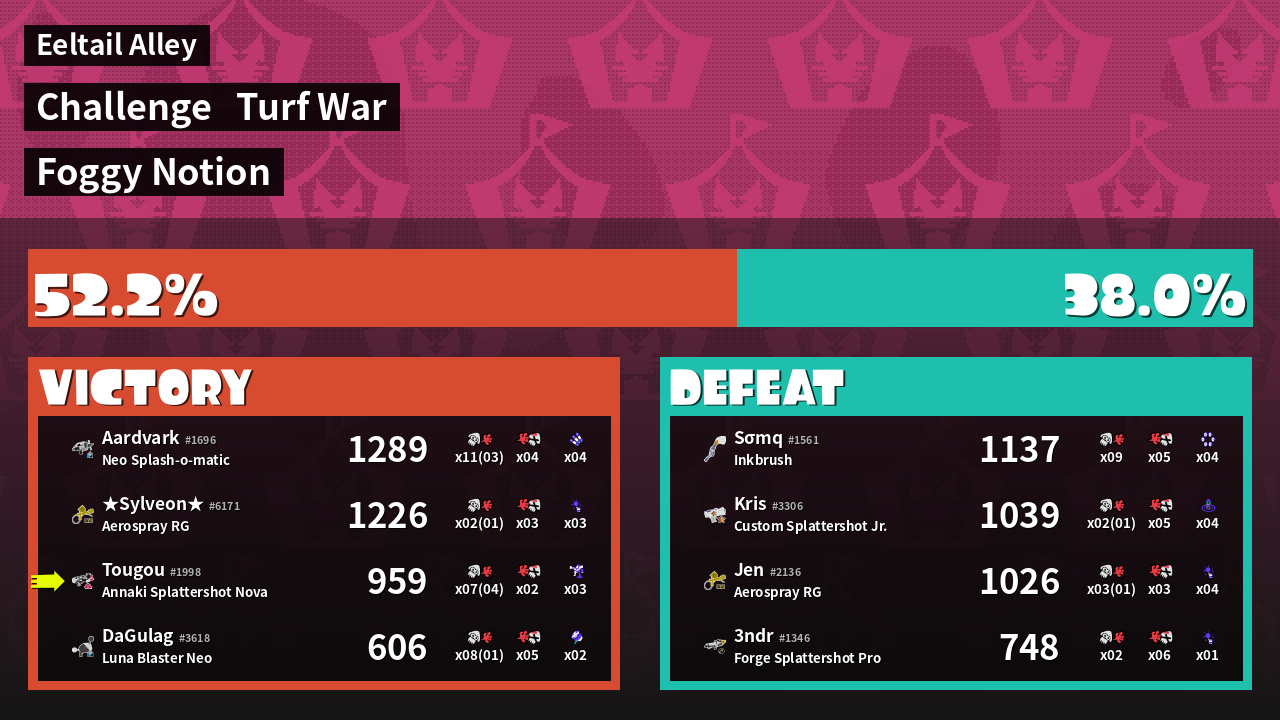 | Medals | #1 Popular Target #1 Splat Assister #1 Ground Traveler | ||