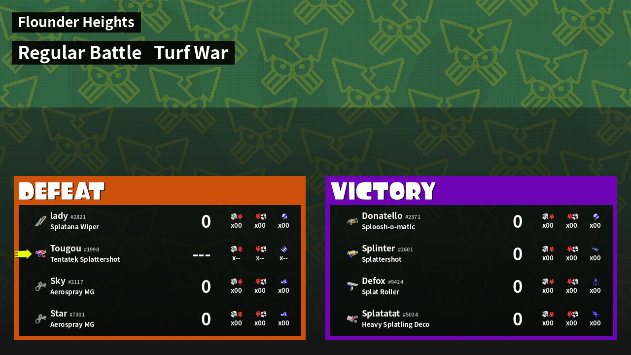 | Weapon | Tentatek Splattershot ( Splat Bomb / Triple Inkstrike) | ||