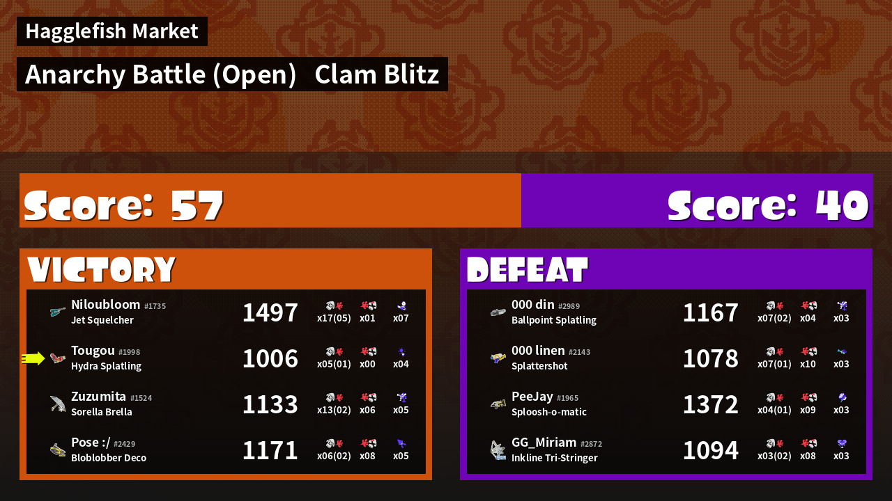 | Mode | Clam Blitz - Anarchy Battle (Open) | ||
