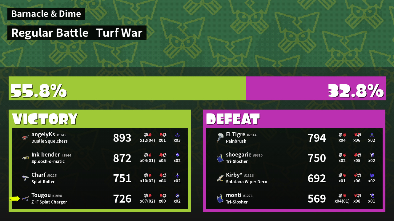 | Medals | #1 Enemy-Base Inker #1 Super Jump Spot #1 Damage Taker | ||