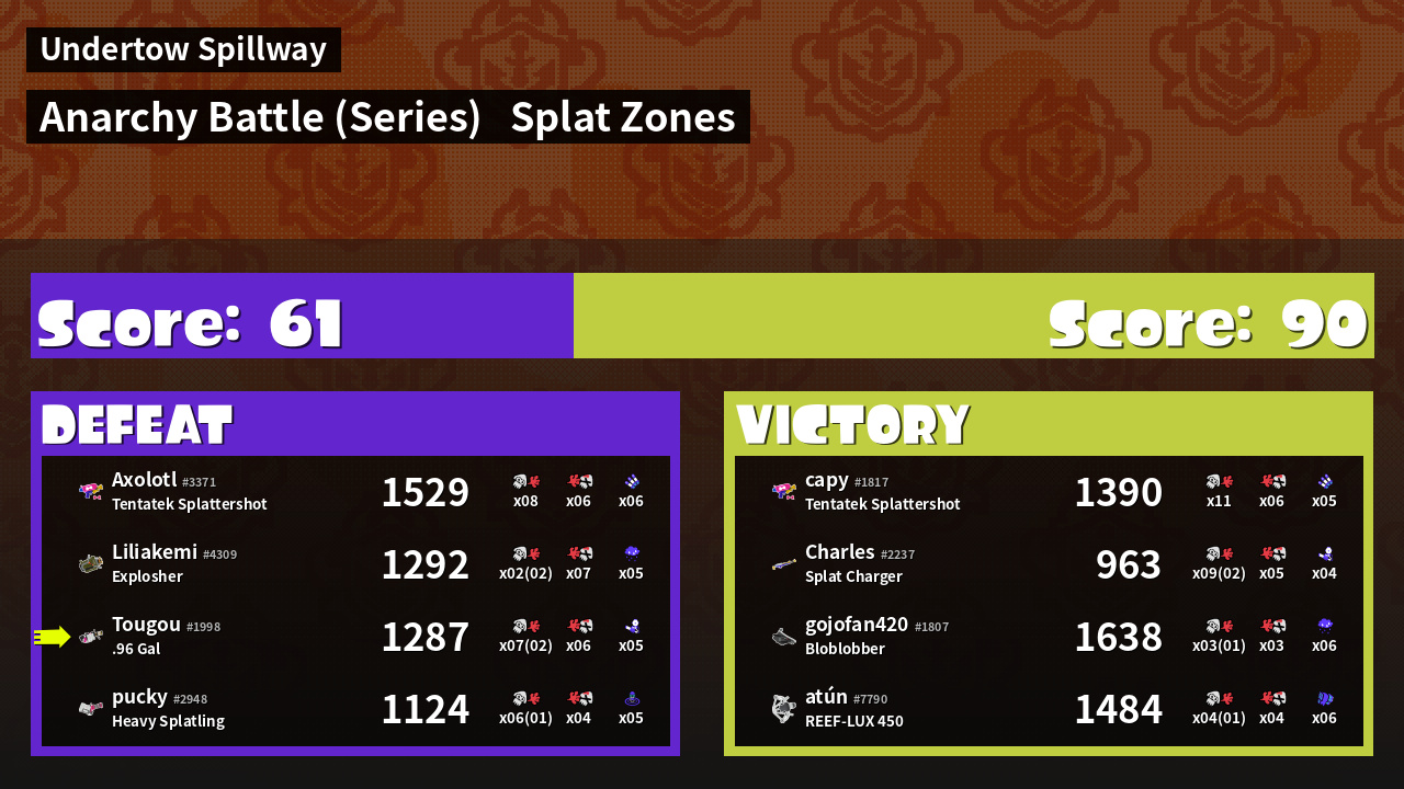 | Mode | Splat Zones - Anarchy Battle (Series) |