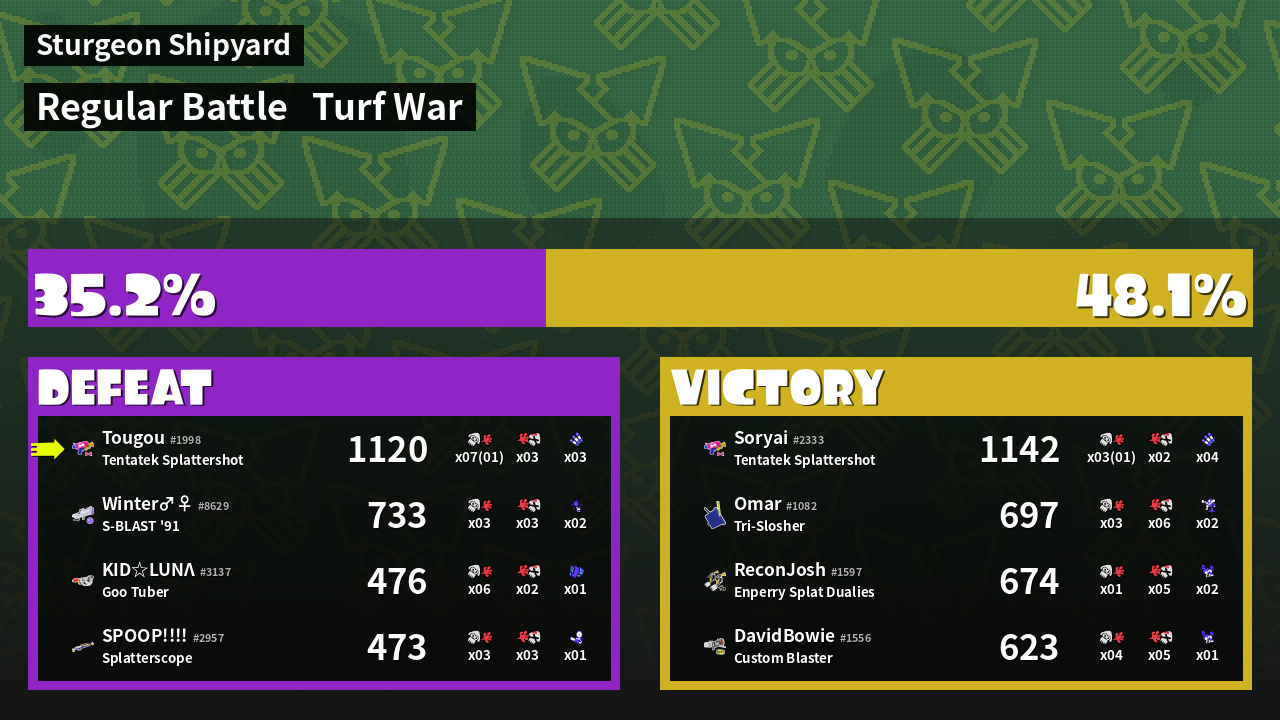 | Medals | #1 Overall Splatter #1 Turf Inker #1 Popular Target | ||