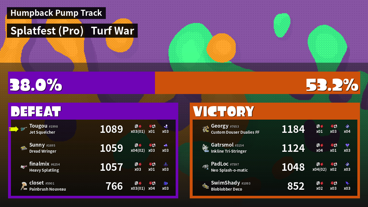 | Medals | #1 Turf Inker #1 Enemy-Base Inker #1 Ink Consumer | ||