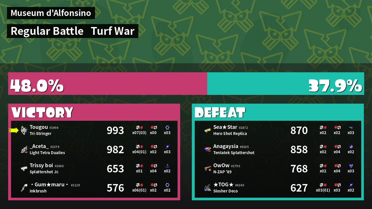 | Mode | Turf War - Regular Battle | ||