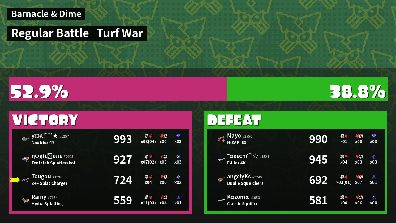 | Mode | Turf War - Regular Battle | ||