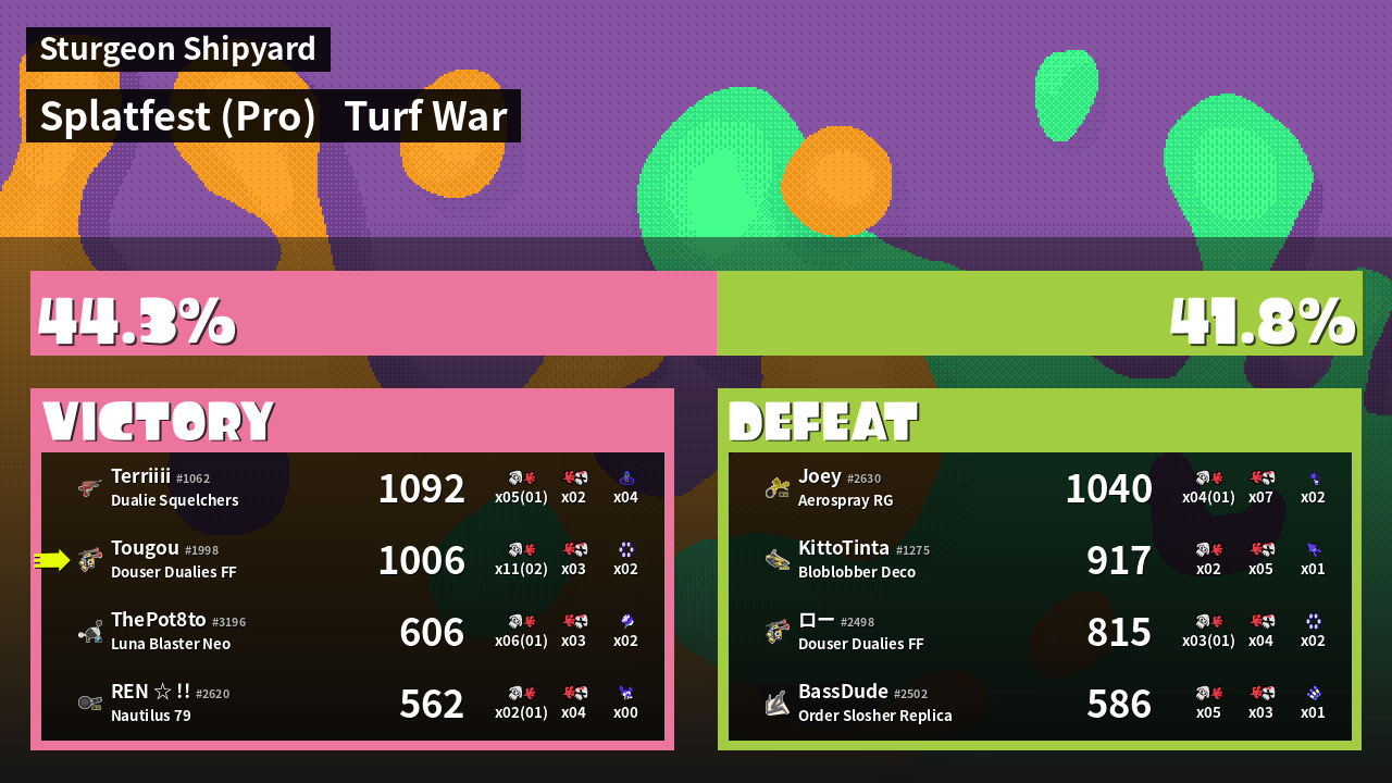 | Medals | #1 Overall Splatter #1 Popular Target #1 Enemy-Base Inker | ||