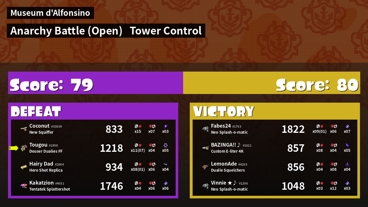 | Mode | Tower Control - Anarchy Battle (Open) | ||