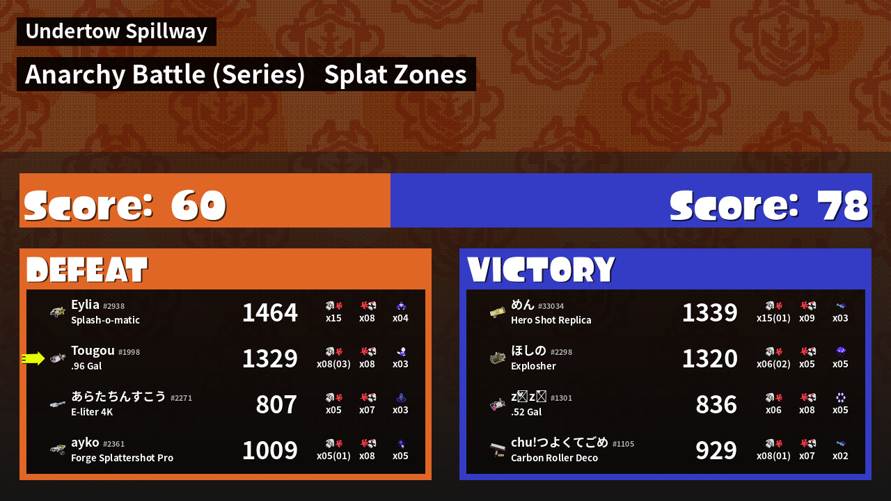 | Mode | Splat Zones - Anarchy Battle (Series) | ||