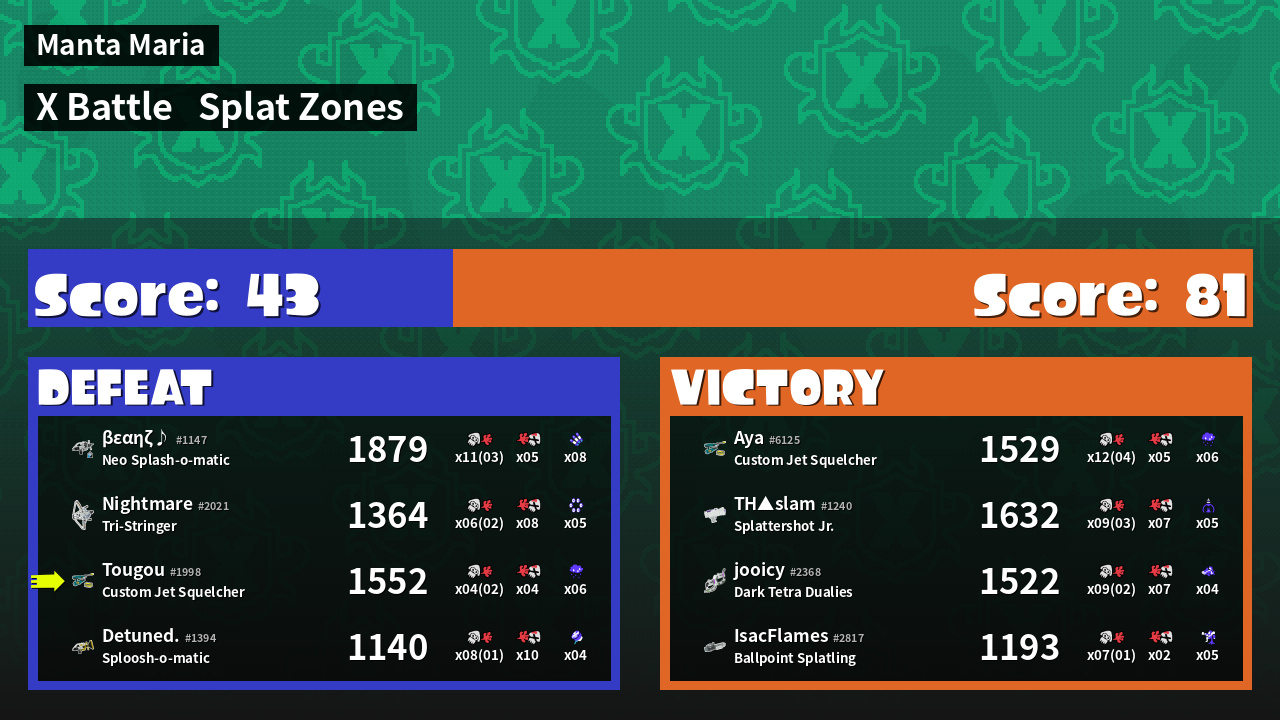 | Medals | #1 Splat Zone Guard #1 Super Jump Spot #1 Ink Storm User | ||