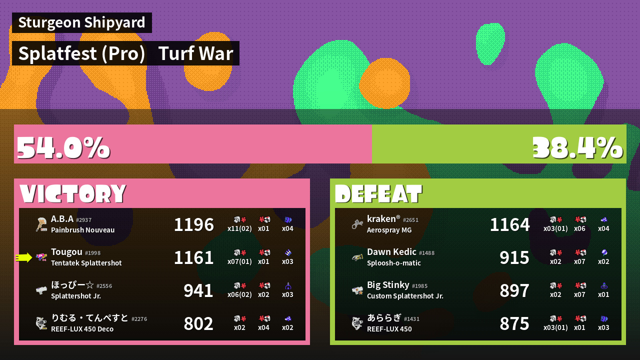 | Medals | #1 Super Jump Spot #2 Overall Splatter #2 Turf Inker | ||