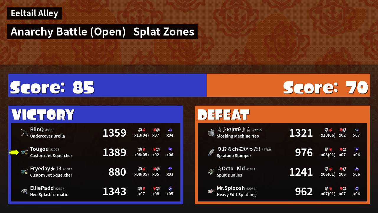 | Mode | Splat Zones - Anarchy Battle (Open) | ||