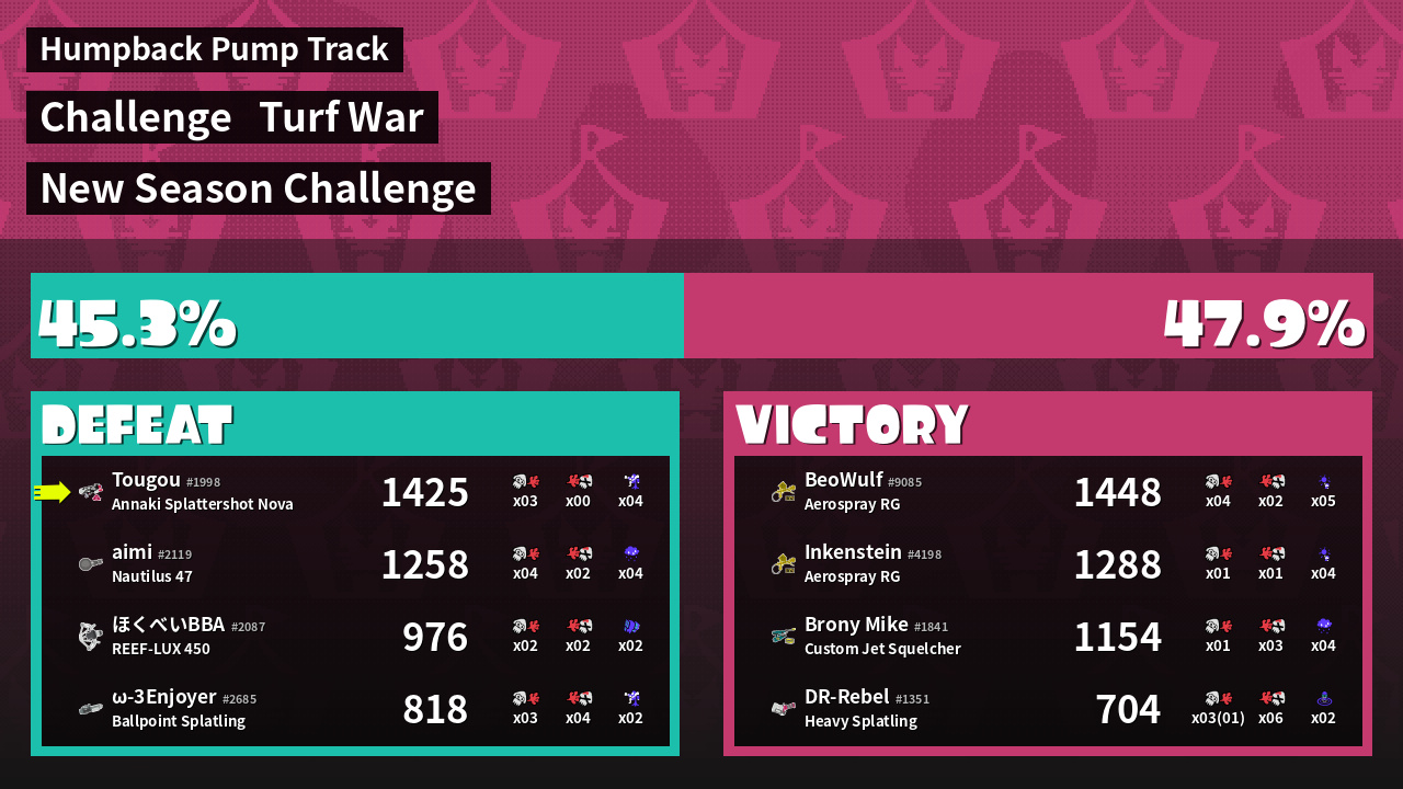 | Mode | Turf War - Challenge | ||