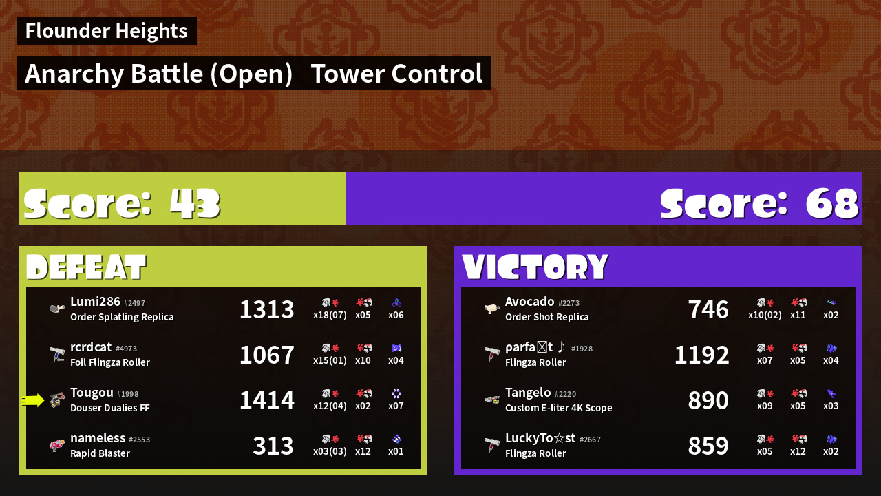 | Mode | Tower Control - Anarchy Battle (Open) | ||