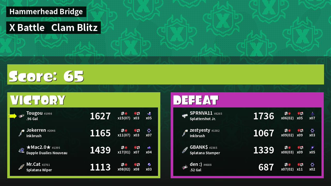 | Mode | Clam Blitz - X Battle |