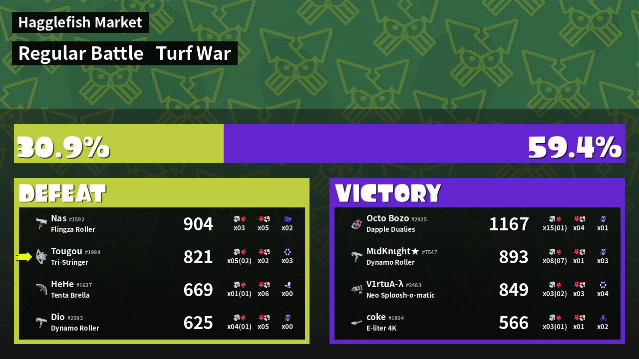 | Mode | Turf War - Regular Battle | ||