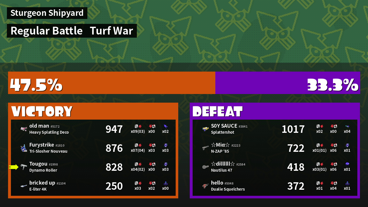 | Mode | Turf War - Regular Battle | ||