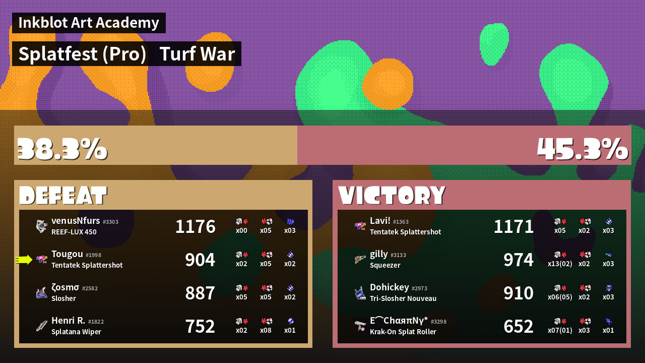 | Mode | Turf War - Splatfest (Pro) | ||