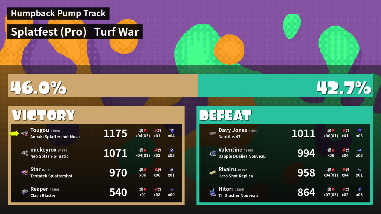| Mode | Turf War - Splatfest (Pro) | ||