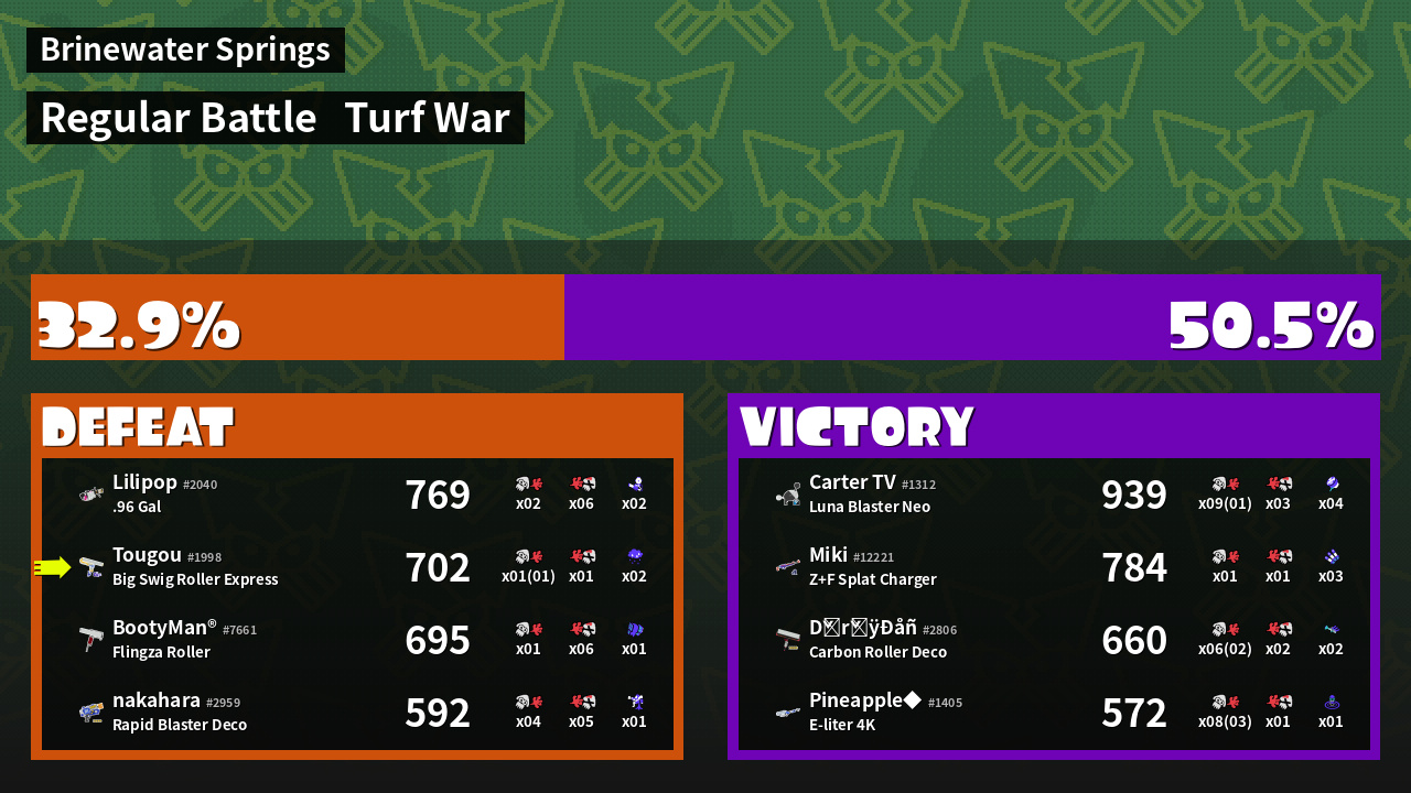 | Medals | #1 Splat Assister #1 Ink Consumer #2 Turf Inker | ||