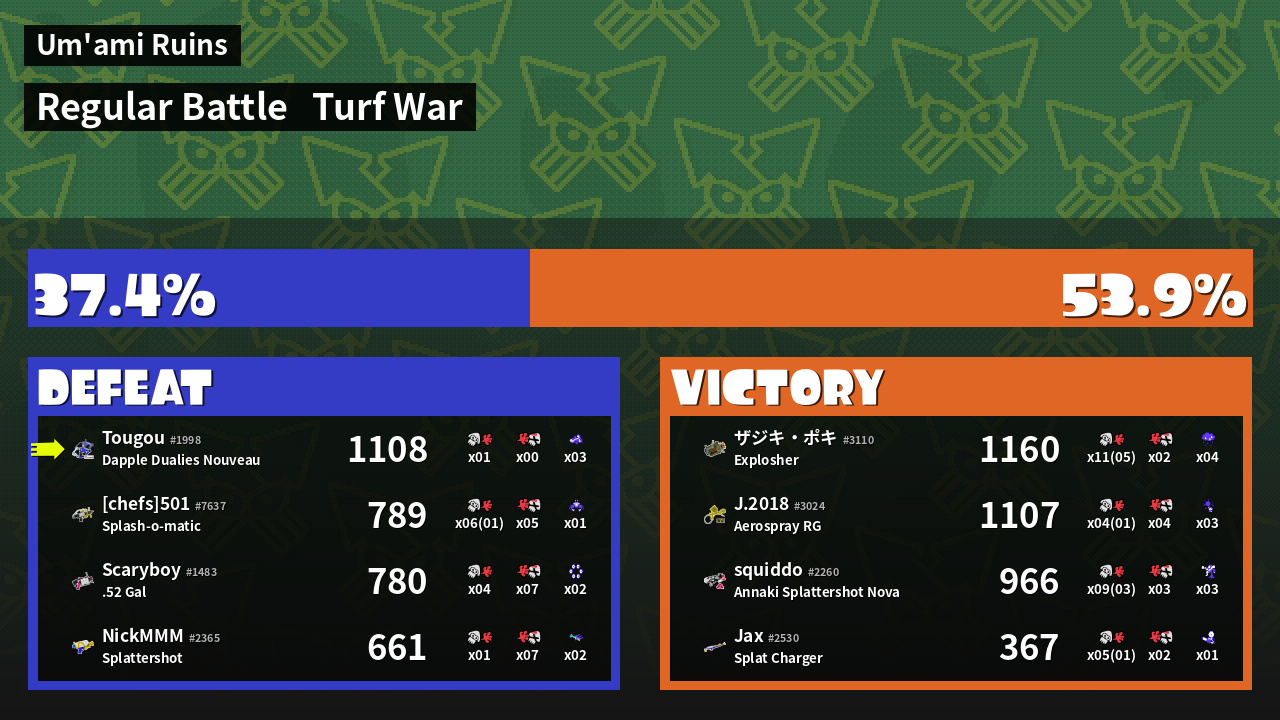 | Mode | Turf War - Regular Battle | ||