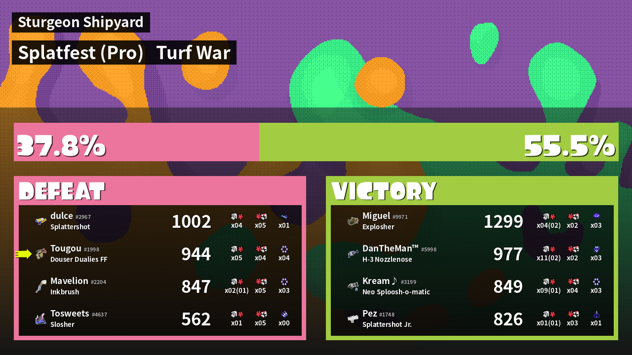 | Medals | #1 Overall Splatter #1 Home-Base Inker #1 Enemy Splatter | ||