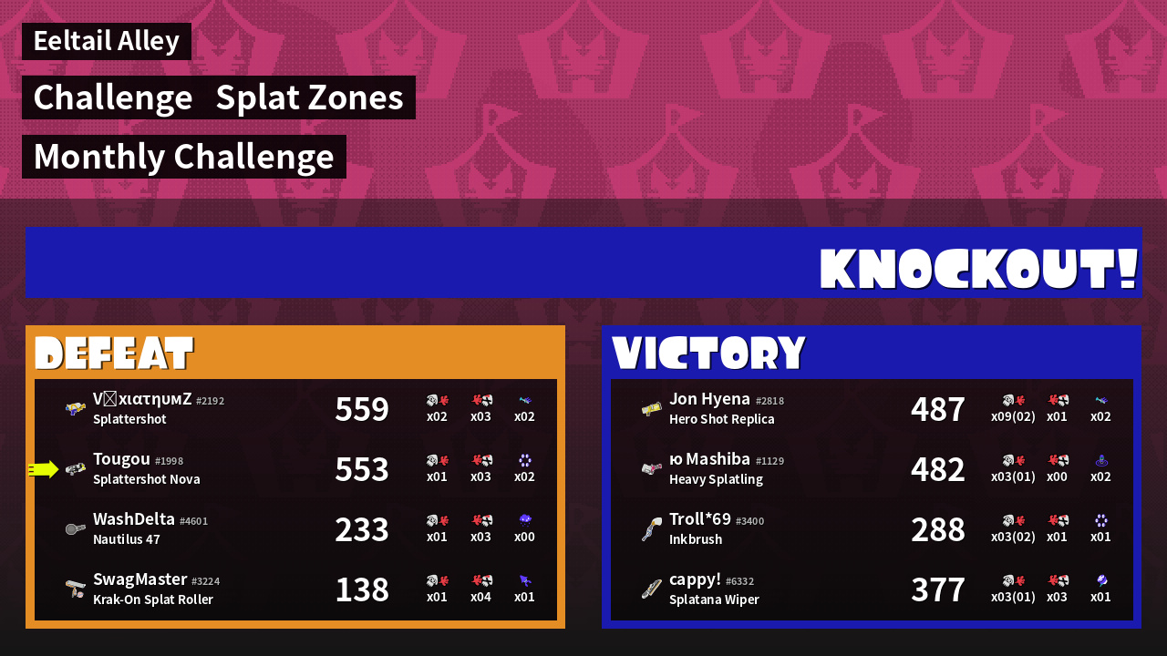 | Medals | #1 Super Jump Spot #1 Killer Wail 5.1 User #2 Overall Splatter | ||