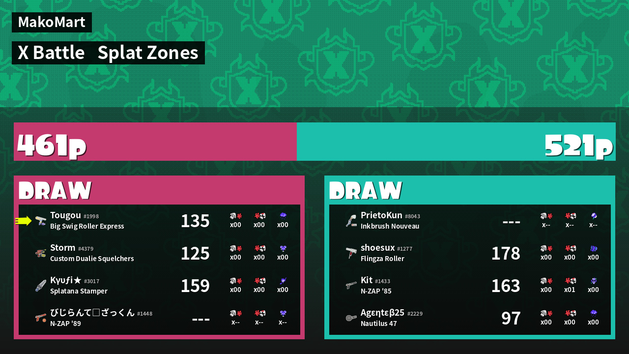 | Mode | Splat Zones - X Battle | ||