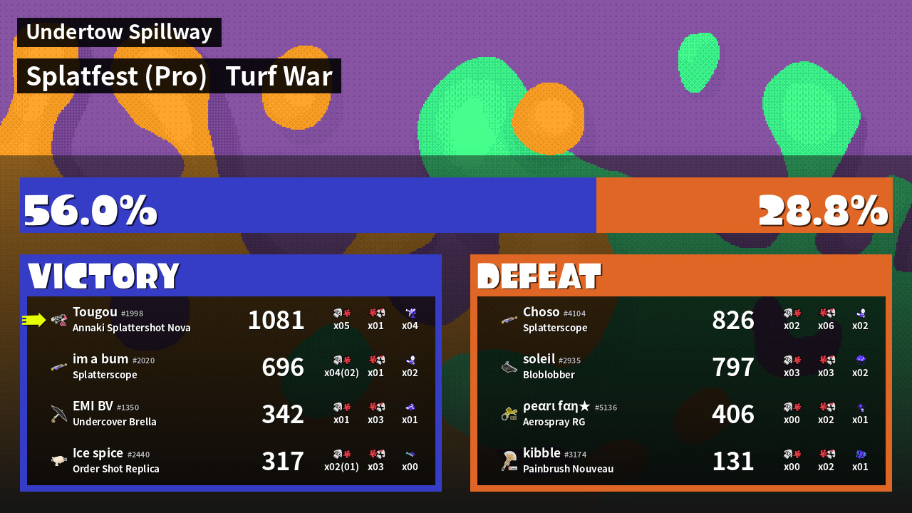 | Medals | #1 Overall Splatter #1 Turf Inker #1 Enemy-Base Inker | ||