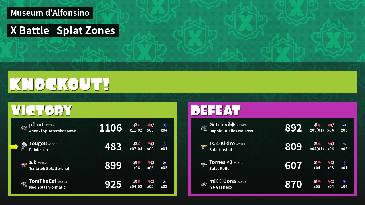 | Medals | #1 Splat Assister #2 Overall Splatter #2 Splat Zone Guard | ||