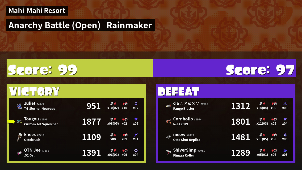 | Mode | Rainmaker - Anarchy Battle (Open) | ||